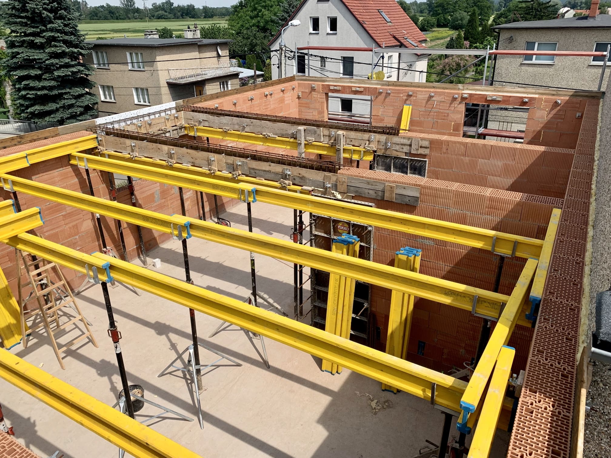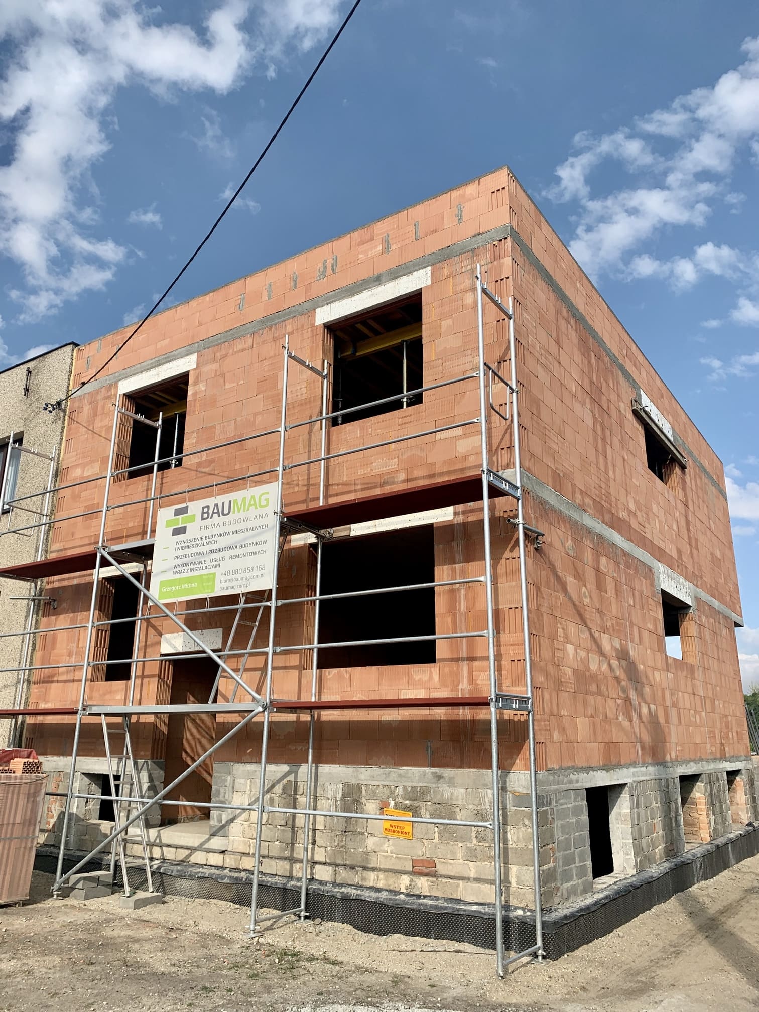 Rozbudowa i nadbudowa budynku mieszkalnego jednorodzinnego z dachem płaskim, zlokalizowanego w miejscowości Racibórz. Zakres prac to budowa domu jednorodzinnego w Raciborzu z wykorzystaniem istniejących fundamentów i ścian piwnicznych. Powierzchnia całkowita domu: 290,29 m2 w tym użytkowa 200,96 m2. Budynek wykonany w technologii murowanej z pustaków ceramicznych Porotherm Profi. Dach płaski, jednospadowy. Wysokość budynku 7,82 m.